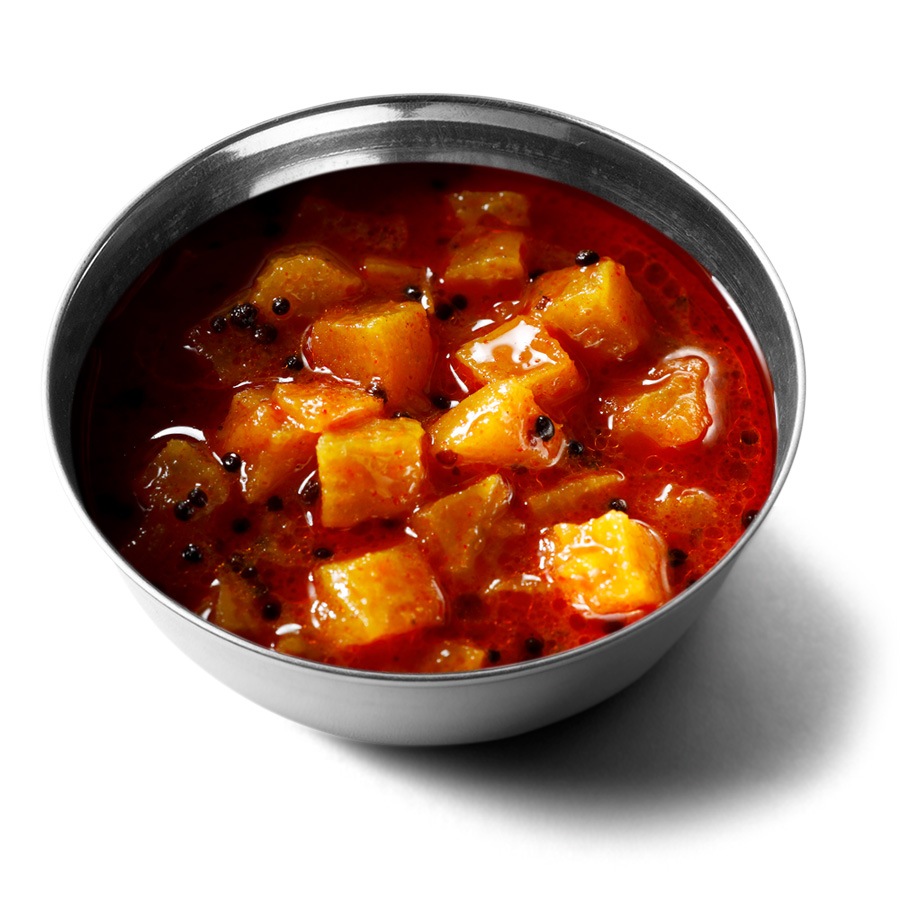 南インドでピックルともよばれるスパイシーで酸っぱい漬物。カレーに添えてどうぞ。
