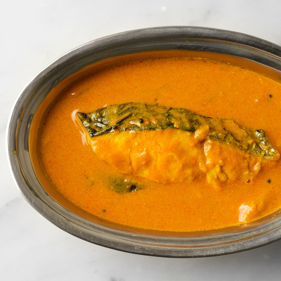 タマリンドとトマト、ココナッツミルクによる酸味とコクに鰆の旨みが調和したマラバール地方(ケララ地方)のレシピ。 鰆の上品な、甘みのある旨味を楽しめる、まさに魚のためといっても過言ではない、マイルドでバランスのとれた味わいです。