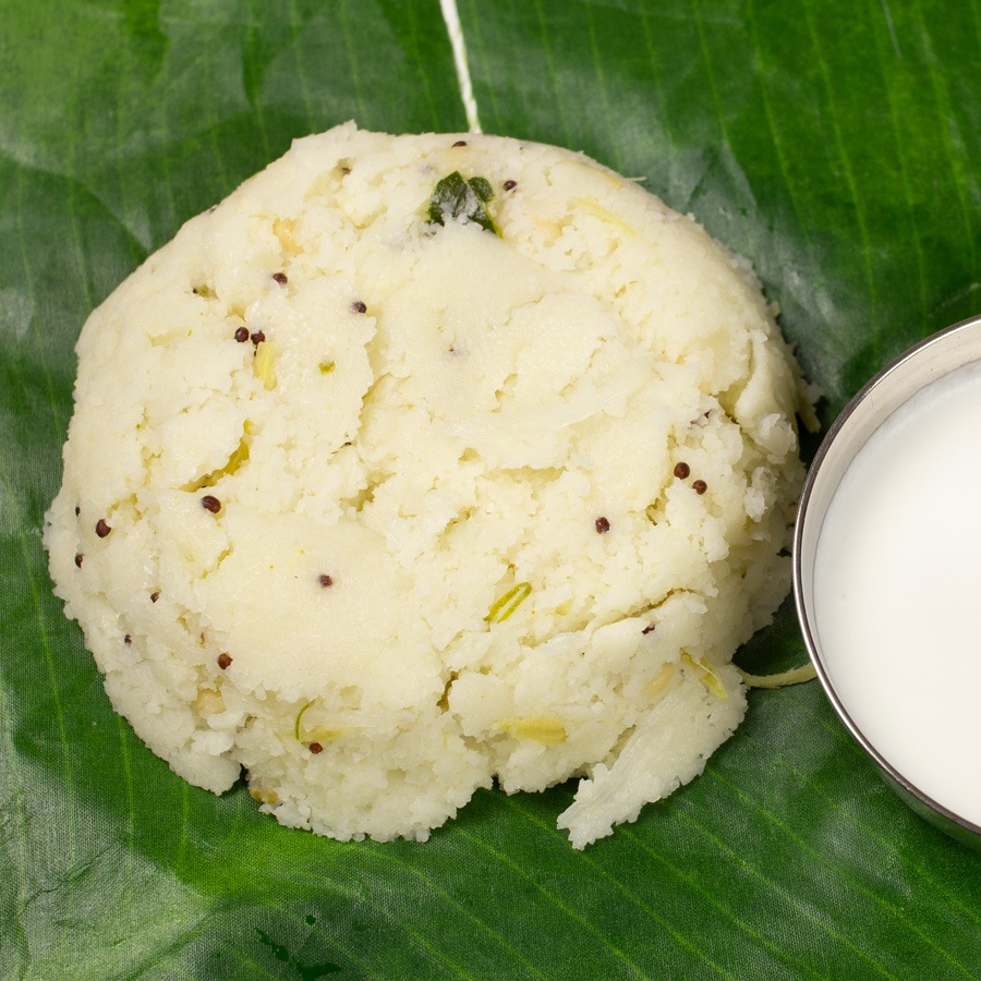 セモリナ粉をスパイスや香味野菜と共に炒り煮した南インドならではの不思議な粉モノ。添付のココナツチャトニや別売の「